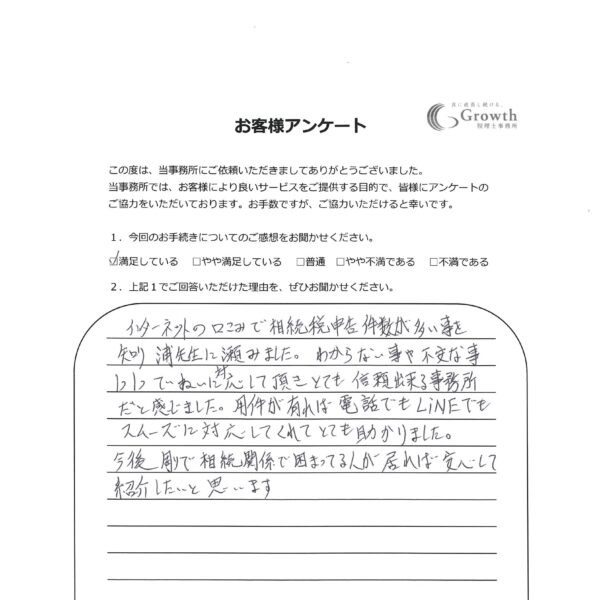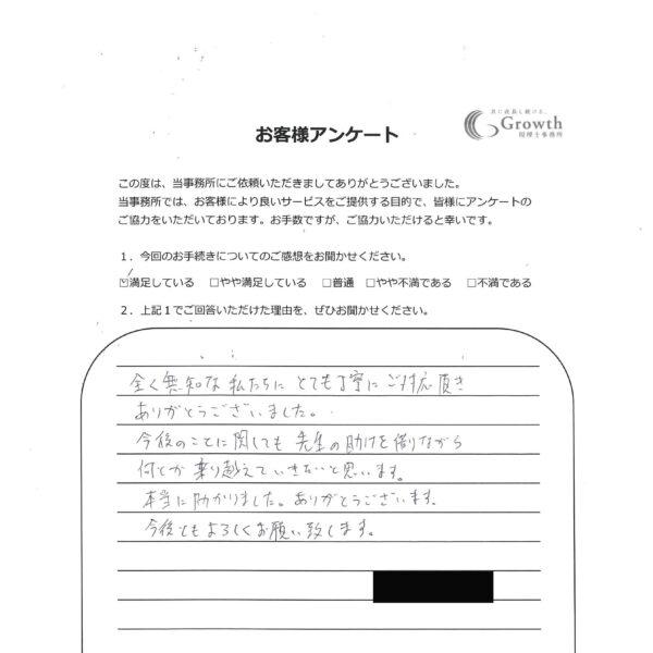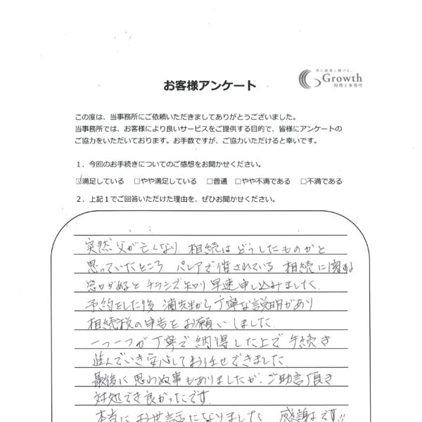 熊本で相続税申告ならGrowth(グロース)税理士事務所の【熊本市中央区 T・K様】節税に関しても親切に教えてくださり、本当にありがとうございました。:お客様の声
