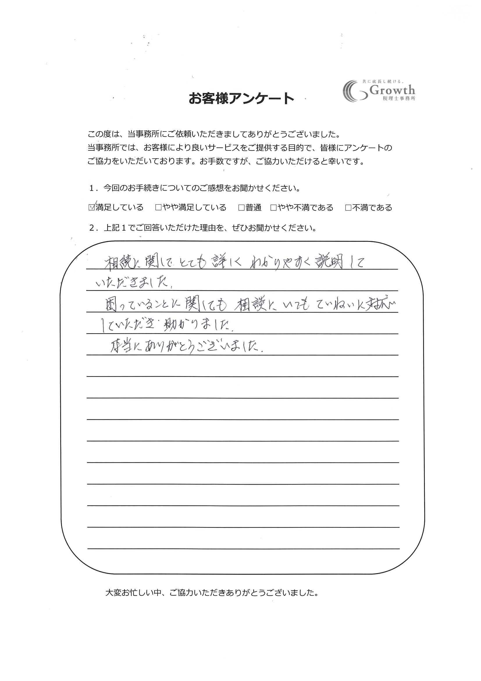 熊本で相続税申告ならGrowth(グロース)税理士事務所の【熊本市中央区 E・U様】本当にお世話になりました。感謝です!!無事、申告も終りほっとしました。:お客様の声
