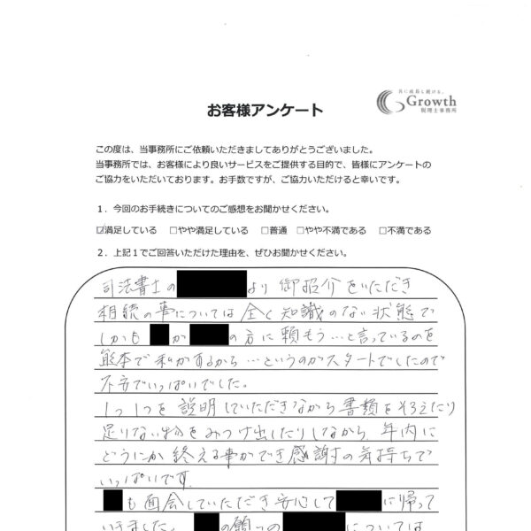熊本で相続税申告ならGrowth(グロース)税理士事務所の【熊本市西区 T・N様】年内にどうにか終える事ができ感謝の気持ちでいっぱいです。:お客様の声